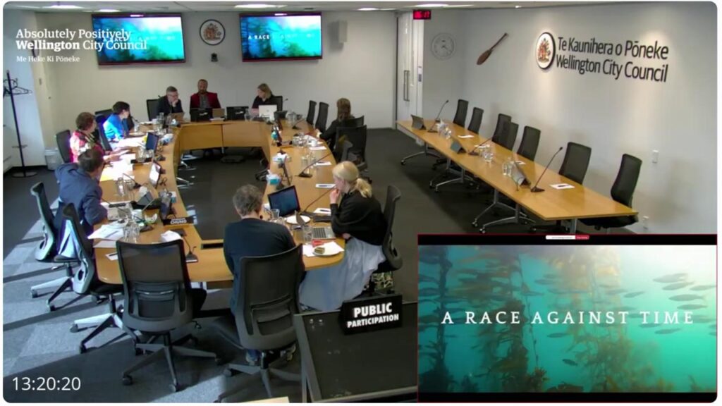 Wellington City Council was asking for feedback on the proposed Tātou ki Uta – Coastal Reserves Management Plan. We used the trailer of ‘Seaweed, A Love Story’ to take the Councillors from the city into the harbour and to highlight how close the Underwater Forests grow to shore. Land-based impacts affect the seaweed forests and sponge gardens of Te Whanganui-a-Tara. Watch the recording here or read our submission (link to pdf).